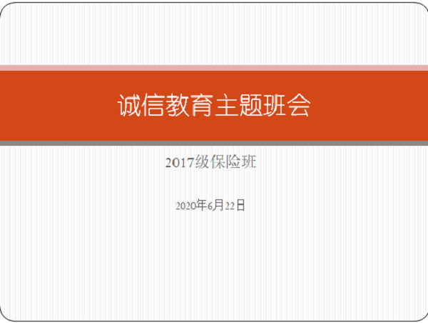 6月22日上午10点30分,17级保险班通过线上互联网的方式开展了《诚信教育》主题班会,此次班会由班上两位生活委员主持。班会内容包括:拒绝不良贷、校园贷、个人征信、资助与奖励及诚信考试等。