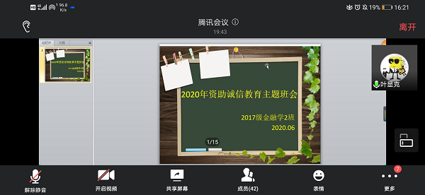 为响应国家助学贷款资助政策相关政策,倡议员工“诚信待人、诚信处事、诚信求学”,2017级金融二班于6月24日下午4点召开了“2020年诚信教育”主题班会,本次会议由生活兼勤贷委员罗扬、陆荣柳主持,2017级金融2班同学参加。