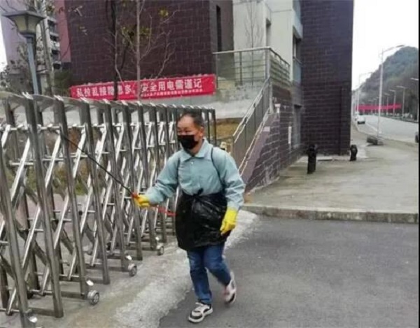 后勤保洁员曹成发,主要负责公共区域消毒工作,他在大年初二就投入了工作。由于疫情影响,大部分员工不能赶回岗位,曹成发一个人要做三个人的事。由于特殊时期对公共区域的卫生消毒要求更高,面对增加的工作量他并没有怨言。而且因为公司的喷雾器不够,曹成发还从自己家里找来了喷雾器。
