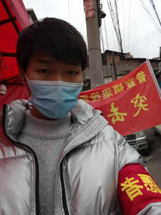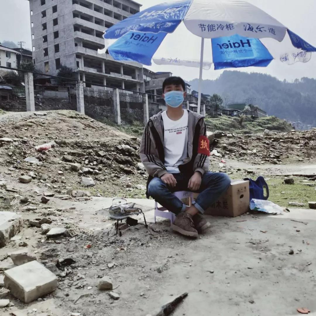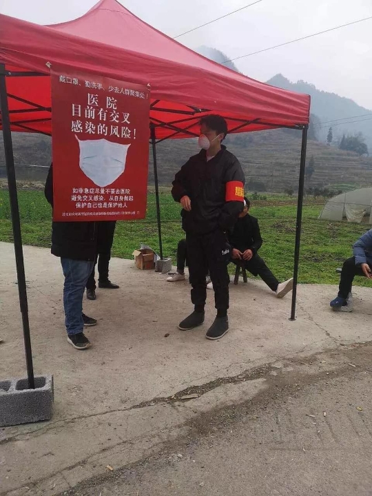 杨秀全,共青团员,2019级投资学类三班员工,在贵州省剑河县南哨乡南哨码头帮助量体温和检查外来人员基本健康情况。