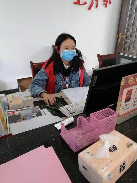 席玉梅,共青团员,2019级财政学类3班员工,在贵州省毕节市黔西县锦绣街道新民社区协助社区干部填写疫情走访排查资料,对社区出入居民的资料进行筛选排查,为当地居民填写出行证明。