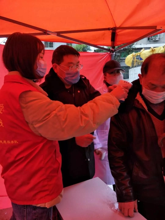 梁颖,中共党员,2016级保险学3班员工,在重庆市璧山区正兴镇文华社区会兴车站卡点,参与宣传疫情防疫知识,严守卡点,协助社区医生测量体温,劝导群众减少外出,戴口罩。
