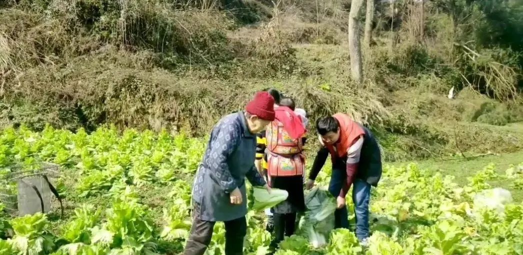 视频里的一家人手握镰刀,弓着身子,正在剥出白菜最青翠最新鲜好吃的部分。纯天然的蔬菜,经过两个小时,最好的部分被留了下来。32袋载着满满诚意的蔬菜,在下午三点,被胡琴父母送到道坪镇政府。