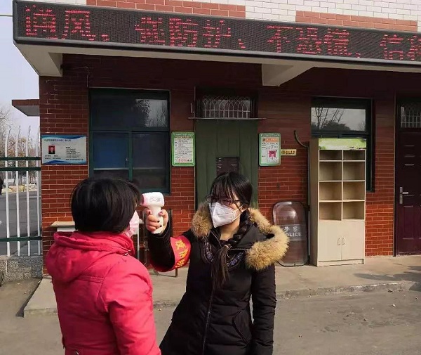 徐新航,2019级税务专硕研究生,班长。在河南省许昌市罗庄社区,配合社区党员对本村进出居民进行体温测量,进行身份登记并仔细核对,宣传防疫知识。