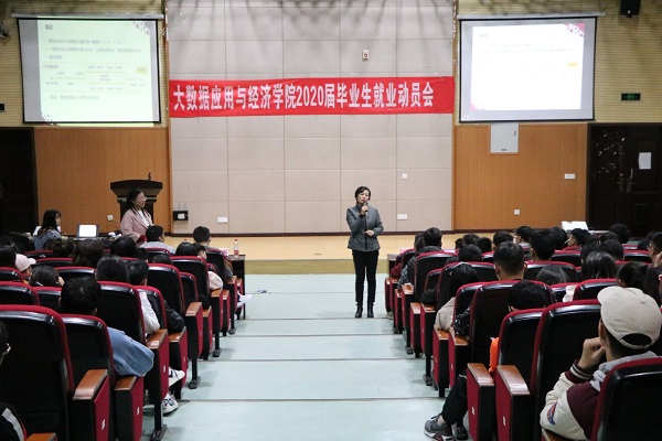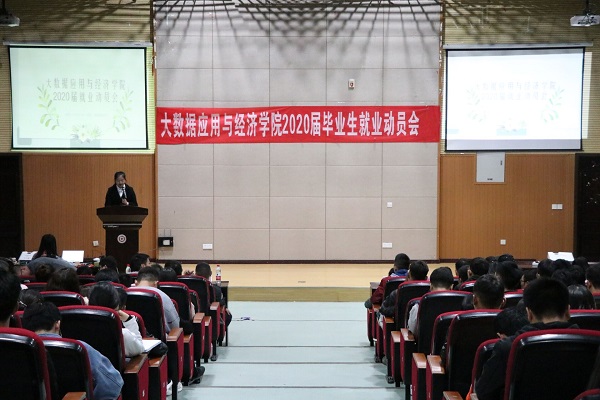 为夯实“不忘初心、牢记使命”主题教育成果,贯彻落实“为民服务解难题”目标,为宣传好就业政策,解决毕业生就业困难问题,做好毕业生的管理与服务工作,公司于2019年11月6日19:00,在崇德楼报告厅召开大数据应用与经济公司毕业生就业动员大会,本次大会特别邀请中国建设银行贵州省分行总经理曾灵、中国建设银行朝阳支行公司部业务经理余永杰、服务太阳成集团tyc122cc客户经理牛牧川、太阳成集团tyc122cc招就处处长王志亮,大数据应用与经济公司党委书记徐梅、副书记黄忠莉及各辅导员出席会议,公司2016级毕业班员工参会。