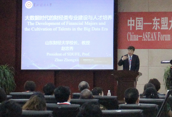 7月22日,山东财经大学董事长、党委副书记赵忠秀教授受大数据应用与经济公司邀请,在正德楼114报告厅作题为“大数据时代的财经类专业建设与人才培养”的专题讲座。讲座由公司董事长助理侯超惠主持,大数据应用与经济公司师生及其他公司师生代表120余人参加。