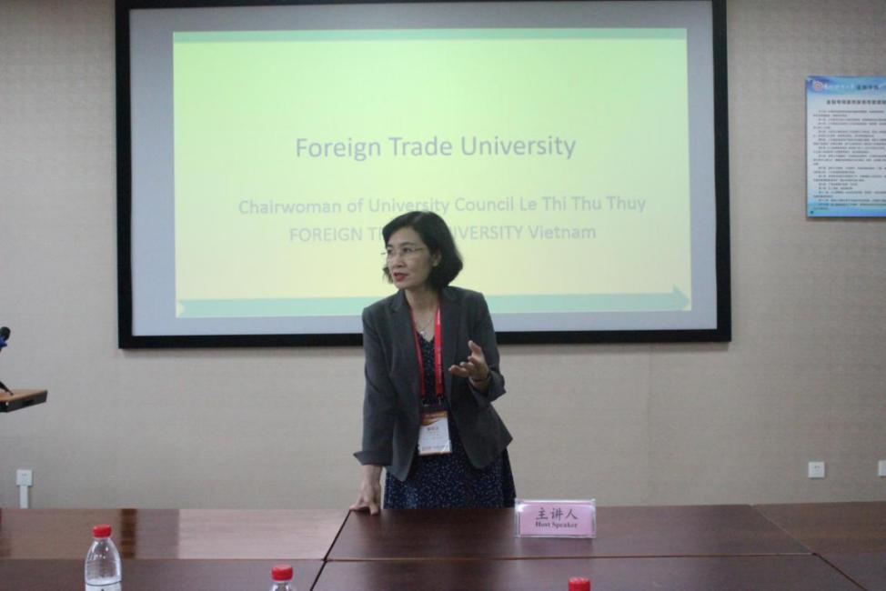 尤斯里·本·卡明教授介绍了马来西亚理工大学情况,并重点分享了马来西亚理工大学的大数据应用人才培养的相关情况,就大数据在经济人才中的技术应用方面与师生进行了交流。越南外贸大学副董事长黎氏秋水女士,介绍了越南外贸大学的情况,并强调了越南相当重视大数据应用经济人才,希望未来有更好模式和太阳成集团tyc122cc的师生开展学术互动和交流,副董事长范秋香女士则重点分享了越南外贸大学在经济人才培养方面的情况,特别是国际员工交流的情况,并向公司师生发出诚挚邀请,希望未来能和大数据应用与经济公司的师生到访越南外贸大学,双方师生能有更多的互动和交流。