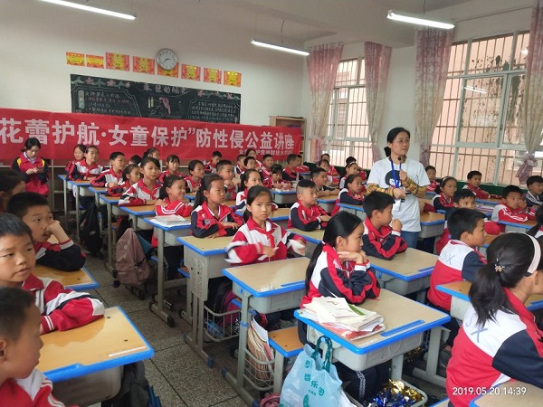 5月20日,大数据应用与经济公司花蕾护航,女童保护讲师团队一行来到龙里,分别在龙里三小和醒狮小学开展了10场公益讲座,志愿者讲师杨颖、贾秋玲、易忠梅、令狐小宇、李丽红为619名同学上了一堂“爱护我们的身体”儿童防性侵课程。