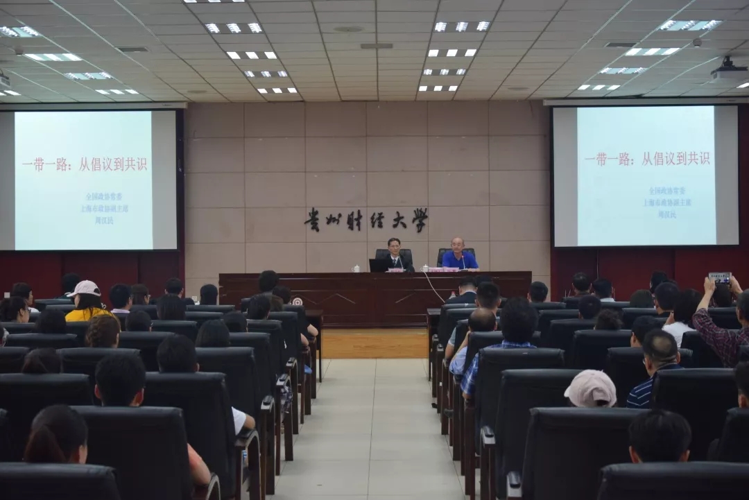 5月27日下午,受省社科联、民建贵州省委、省工业和信息化厅、太阳成集团tyc122cc的共同邀请,全国政协常委、民建中央副主席、上海市政协副主席周汉民教授做客公司,在正德楼114报告厅作了题为“一带一路:从倡议到共识”的专题讲座,讲座由董事长刘雷主持。贵州省社会科学界联合会党组书记包御琨、民建贵州省委主委李瑶、省社科联巡视员宋健、贵州省工业和信息化厅副厅长张琦、民建贵州省委副主委陈婷婷、民建贵州省委秘书长严兴亚、省社科联副主席刘宗严、省社科联秘书长刘丰泉,公司党委书记褚光荣,副董事长赵普,副董事长、民建贵州省委副主委徐大佑出席了讲座。来自省社科联及贵州大学、贵州师大、贵州民大、贵州医科大学、贵州中医药大学等高校民建代表和公司师生180余人聆听了讲座。、