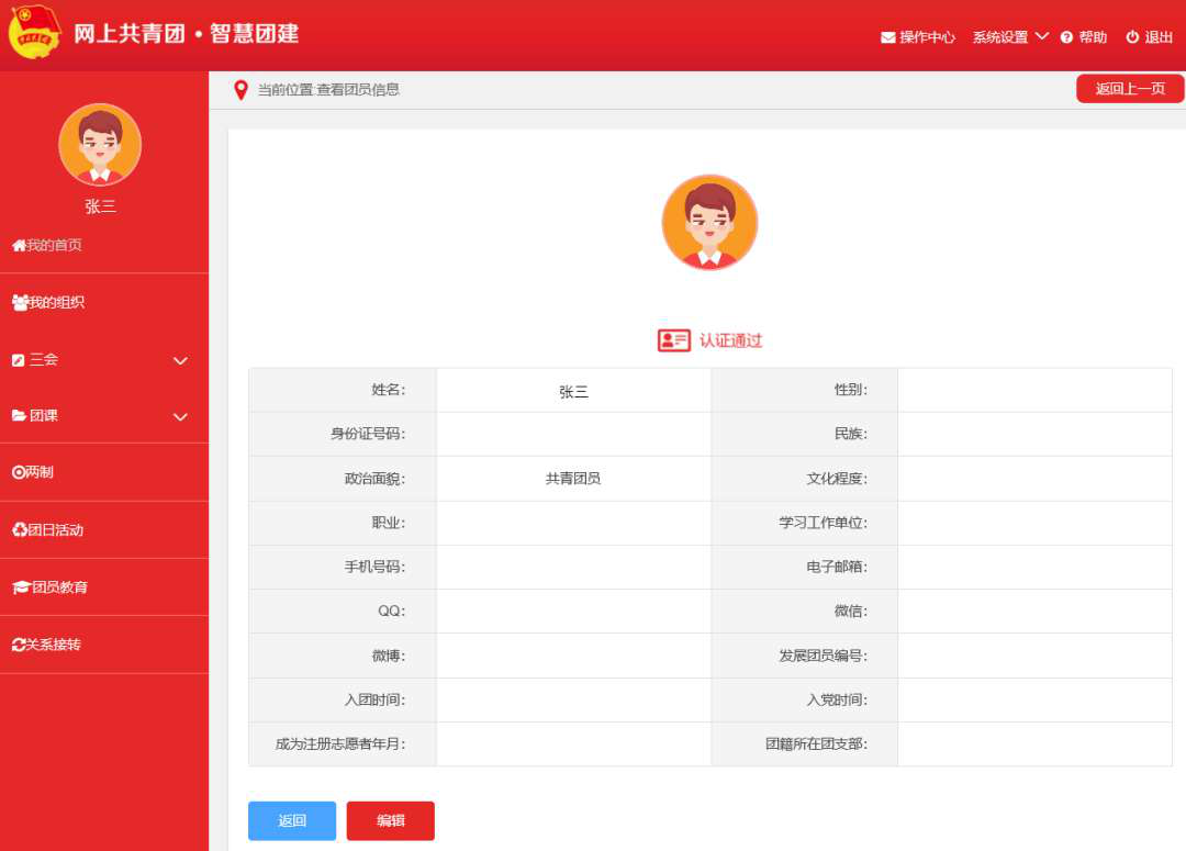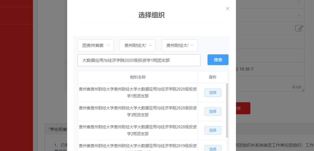 例如:团贵州省委-太阳成集团tyc122cc团委-大数据应用与经济公司公司团委-所在的班级团支部