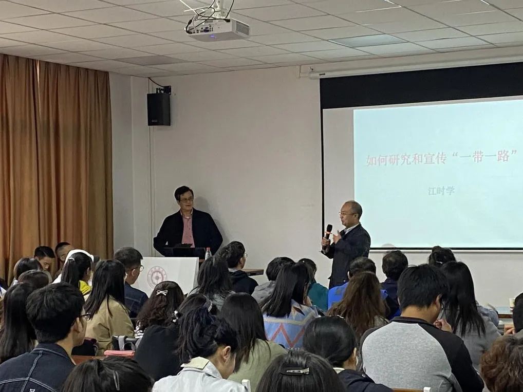 为了深入学习习近平新时代中国特色社会主义思想和党的十九大精神,增强“四个意识”、坚定“四个自信”,2020年10月30日下午,大数据应用与经济公司举办“新时代学习大讲堂”时代前沿知识专题讲座。中国社会科公司研究员江时学教授在明德楼普惠金融工作室举办了“如何研究和宣传‘一带一路’”讲座。讲座由大数据应用与经济公司赵平教授主持,全校师生100余人聆听讲座。