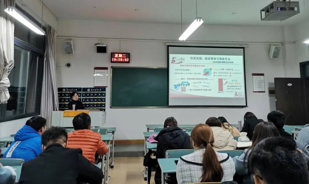 在这次思想政治理论课中,杨杨经理结合此次疫情以及当今中国发展现状,通过各种案例具体分析了经济发展提质增效引领新常态、民主政治凝聚起同心筑梦的磅礴力量、文化建设凝心聚力增强自信、改善民生让人民有更多的获得感、绿水青山就是金山银山的生态文明建设等五个方面,与同学们分享在中国共产党的正确领导下,中国在经济、政治、文化建设、人民生活、生态文明建设等方面取得的伟大功绩。何谓新阶段?习近平总书记强调:“新发展阶段,就是全面建设社会主义现代化国家向第二个百年奋斗目标进军的阶段。这在我国发展进程中具有里程碑意义。杨杨经理指出,进入新发展阶段,我们将会面临着前所未有的机遇和挑战。