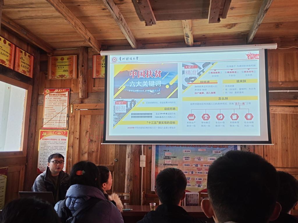 清晨,忙碌的一天才刚刚开始,公司党建扶贫台江行的扶贫小队便早早地坐上了在明德楼前等待的大巴,没有号角,出发即行动。经过四个多小时的车程,扶贫小队抵达了公司对口帮扶县——台江县。来不及休息,简单集合后,扶贫小队把公司带去的爱心物资交托给当地党政负责人,请他们把这些爱心物资逐一送到需要的贫困户家里,便跟随公司驻村工作者唐文杰深入拥党村进行实地考察学习。在大数据应用与经济公司与拥党村座谈会上,拥党村主任和支书详细介绍了该村现状与应对脱贫攻坚道路上严峻挑战的艰辛历程,并对公司党委给予的帮扶表达了真挚地感谢。他表示,在公司党委的帮扶下拥党村的基础设施、卫生状况、村民素质都有了极大的改善,决胜脱贫攻坚指日可待,他们有信心也有决心能够与全国人民一道步入小康。