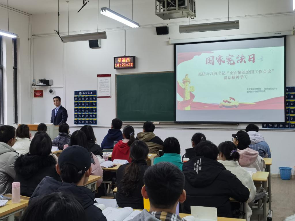 在第七个国家宪法日前夕,12月3日大数据应用与经济公司财税系联合国家税务总局贵安新区税务局以及贵州跃华律师事务所举行“宪法走进课堂,税法助力成长”的讲座。此次活动也是财税系将“思政”内容融入税法课程教育的系列活动,目的在于培养员工尊崇宪法、忠于宪法、维护宪法的思想理念,引导员工深化遵纪守法和依法诚信纳税的意识,真正感受到宪法的精神。