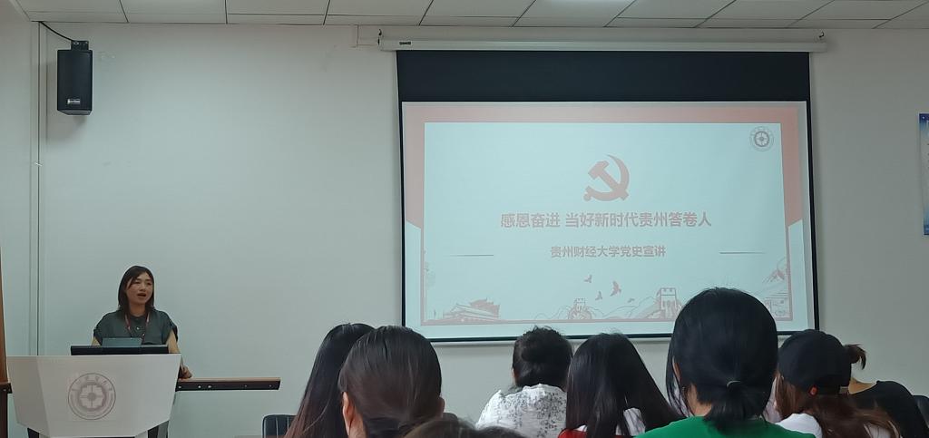 6月22日中午12点30分,大数据应用与经济公司(贵阳大数据金融公司)党委副书记黄忠莉在明德楼普惠金融工作室给本科员工第四党支部的党员同志作了主题为《感恩奋进 当好新时代贵州答卷人》的党史宣讲。