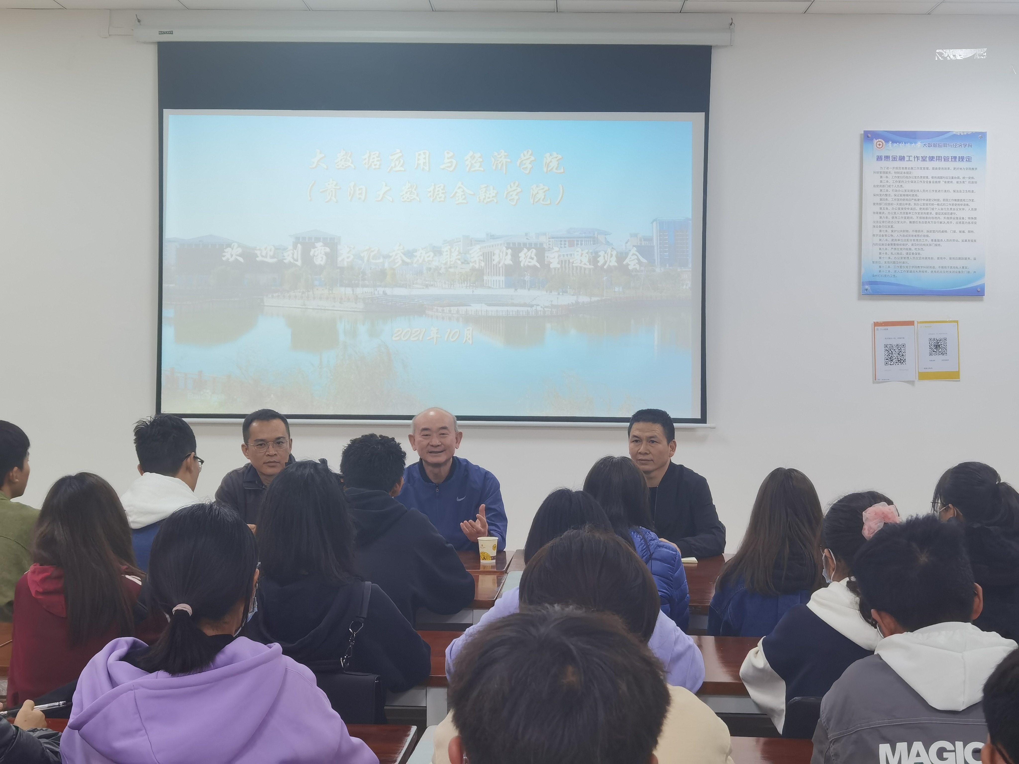 10月26日下午,公司党委书记刘雷到大数据应用与经济公司(贵阳大数据金融公司)参加联系班级主题班会,并走访员工寝室。