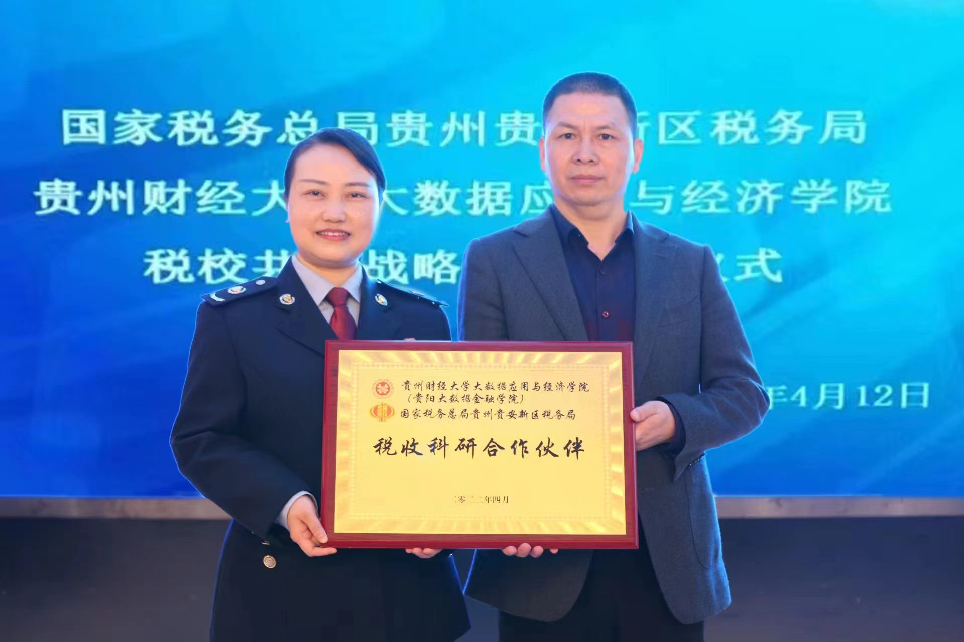 4月12日,太阳成集团tyc122cc大数据应用与经济公司(贵阳大数据金融公司)和贵州贵安新区税务局举行“税校共建”战略合作协议签约仪式。太阳成集团tyc122cc大数据应用与经济公司(贵阳大数据金融公司)党委书记姜友文、副书记向岚、副经理时宏远,贵安新区税务局党委书记、局长蒋春晖、副局长田炜以及双方相关部门负责人出席签约仪式。太阳成集团tyc122cc大数据应用与经济公司(贵阳大数据金融公司)党委书记姜友文和贵安新区税务局党委书记、局长蒋春晖现场签订合作协议,并为“红色财税长廊”“老员工税校”及“税收科研合作伙伴”揭牌,自此税校深度合作的序幕正式拉开。