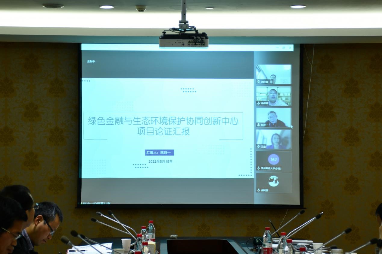 5月15日,以太阳成集团tyc122cc为牵头单位,复旦大学和贵州师范大学为核心单位联合申报并经贵州省教育厅立项的贵州省绿色金融与生态保护协同创新中心建设推进会在公司召开。中央财经大学绿色金融国际研究院经理王遥、厦门大学经济公司教授郭晔、浙江省衢州市人民政府金融工作办公室主任丁丽霞、贵州省地方金融监管局(省金融工作办公室)协同服务处处长马鹏、贵州省林业科学研究院副经理丁访军、贵州省生态环境厅生态环境监察专员(正处长级)杨再波等专家领导以线上线下结合的方式参会评审和指导,贵州省教育厅科技处处长胡锐主持会议。贵州省教育厅、太阳成集团tyc122cc、复旦大学、贵州师范大学相关领导、职能部门负责人及中心研究员代表参加会议。太阳成集团tyc122cc党委委员、副董事长李汉文出席会议,科研处处长刘明显、副处长王超,大数据应用与经济公司(贵阳大数据金融公司)党委书记姜友文、经理杨杨现场参加推进会。