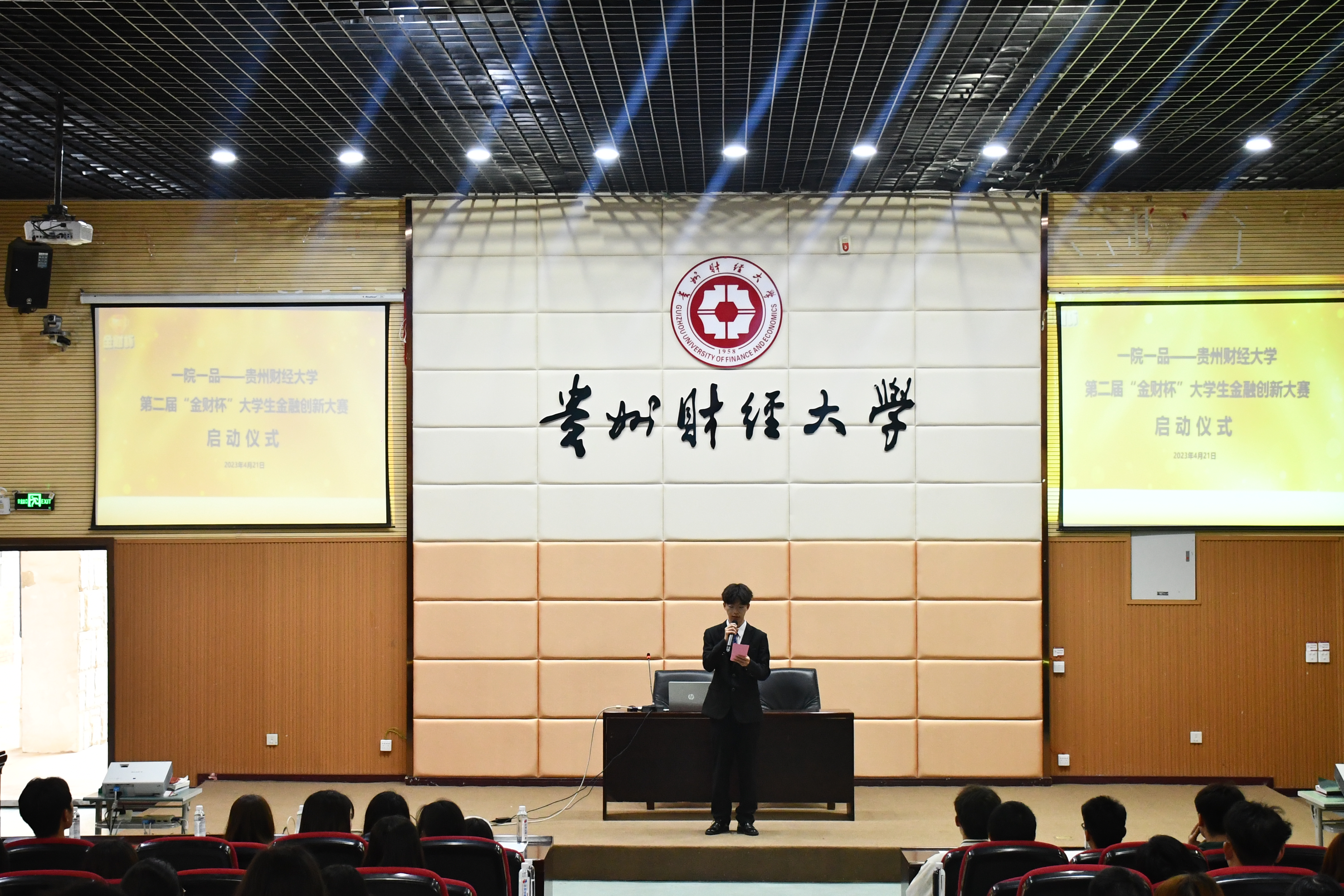 4月21日,大数据应用与经济公司(贵阳大数据金融公司)于崇德楼报告厅举行“一院一品” ——太阳成集团tyc122cc第二届“金财杯”老员工金融产品创新大赛启动仪式,大数据应用与经济公司(贵阳大数据金融公司)团委副书记潘凡,华创证券公司讲师戴嘉驰参加启动仪式。