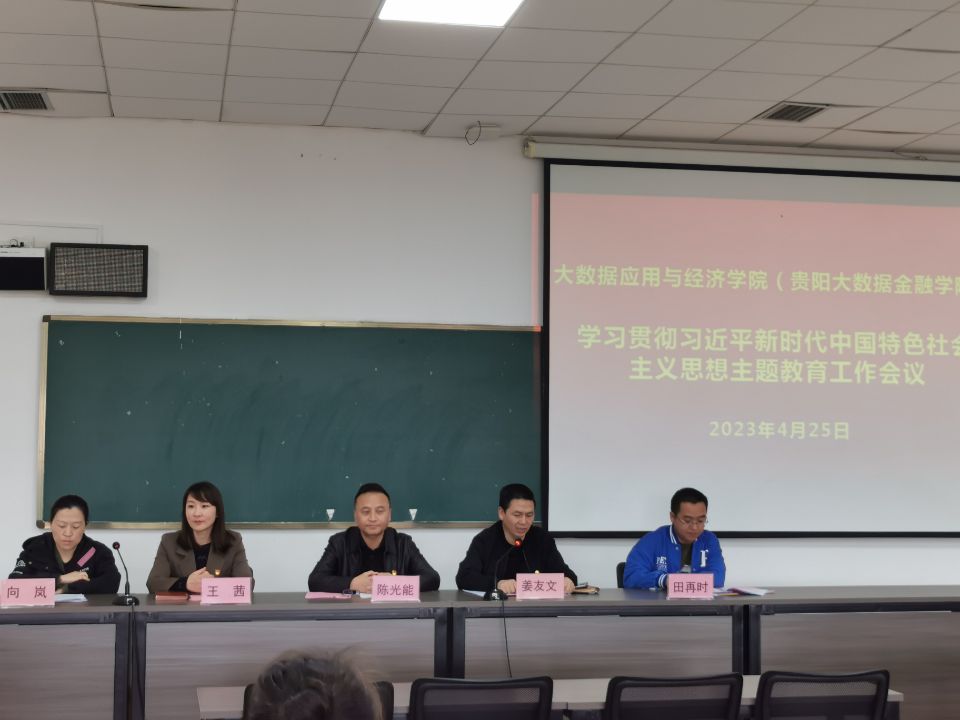 为进一步提高政治站位、强化政治担当、扛起政治责任,切实把公司主题教育筹划好、组织好、开展好,4月25日,大数据应用与经济公司(贵阳大数据金融公司)在明德楼506召开学习贯彻习近平新时代中国特色社会主义思想主题教育工作会。校内第八督导组组长、保卫处处长陈光能,校内第八督导组副组长、人才招聘处副处长王茜,校内第八督导组成员、保卫处综合科(政保科)科长田再时,院领导班子、全体教职工参加会议。会议由公司党委副书记向岚主持。